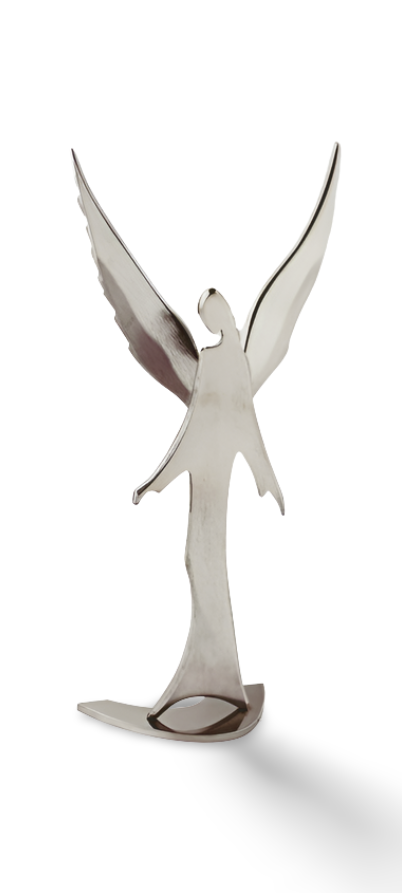 Piękny Anioł wykonany ręcznie ze stali nierdzewnej. Doskonały na prezent, nagrobek czy dla udekorowania domu. Dostępny w różnych wymiarach.