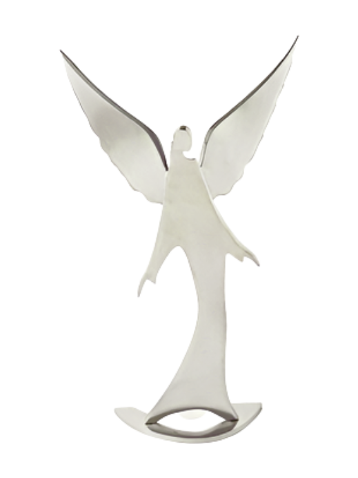 Piękny Anioł wykonany ręcznie ze stali nierdzewnej. Doskonały na prezent, nagrobek czy dla udekorowania domu. Dostępny w różnych wymiarach.