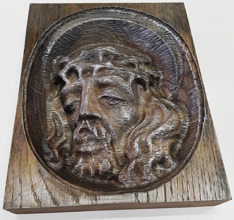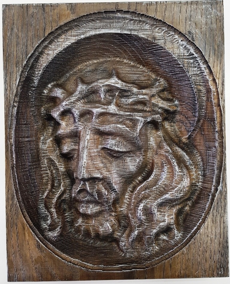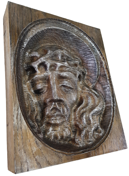 Piękna płaskorzeźba z wizerunkiem Chrystusa. Wykonana w drewnie dębowym. Malowana ręcznie