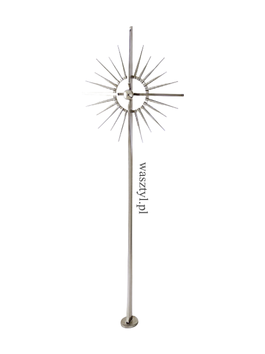 Pion krzyża wykonany z elementu grubości 8mm o ciekawym i unikatowym kształcie, polerowany z przodu, natomiast boki i tył szlifowane.