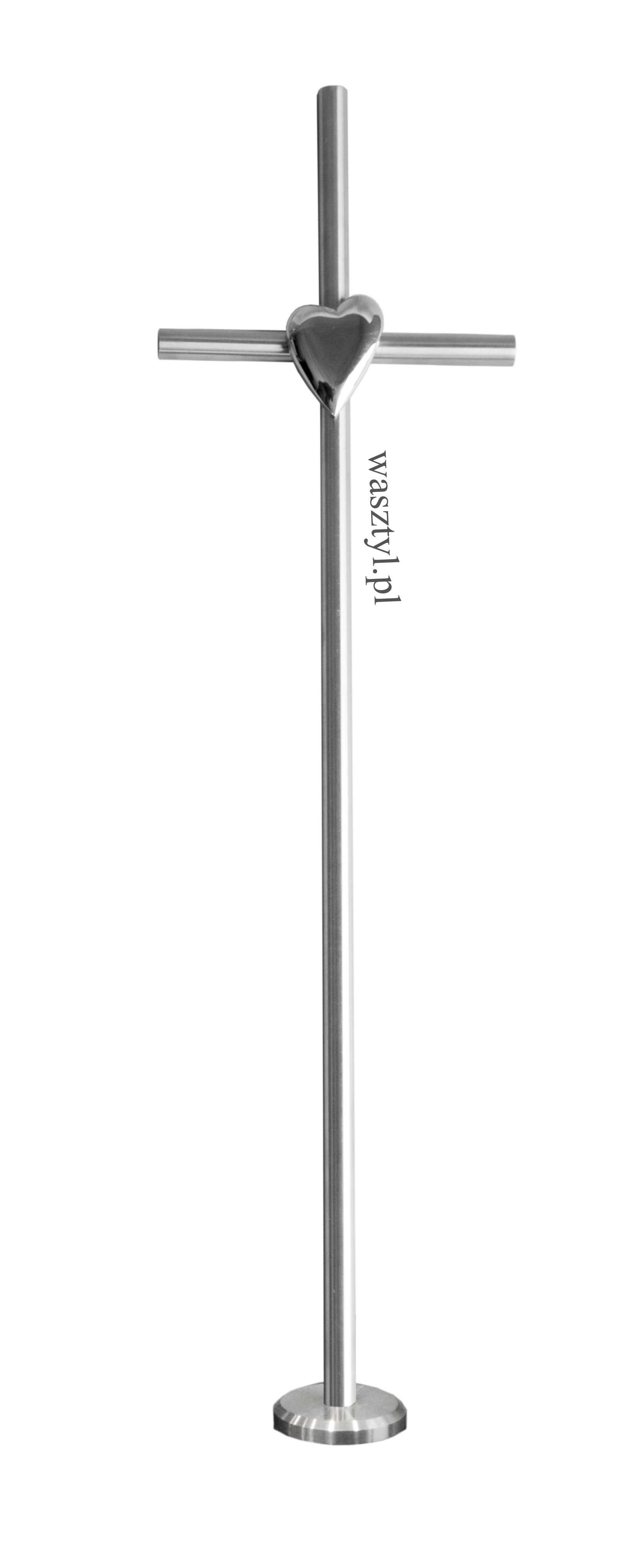 Krzyż nagrobkowy z motywem serca. Wykonany ręcznie, w całości ze stali nierdzewnej.