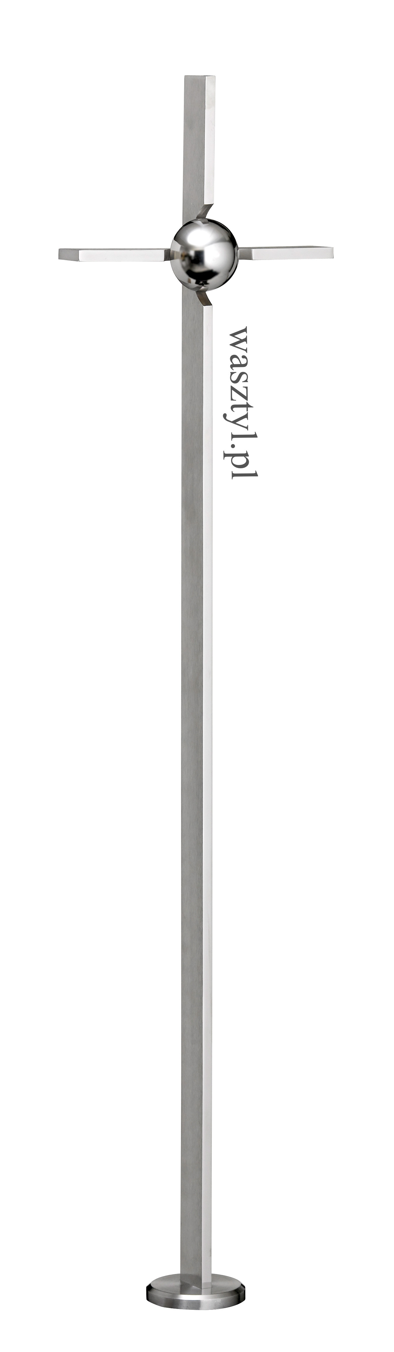 Krzyż z płaskownika 8x30mm - przód polerowany, boki oraz tył szlifowane. Półkula 50mm polerowana. Rozeta 60x10mm.