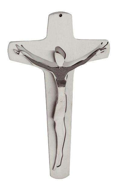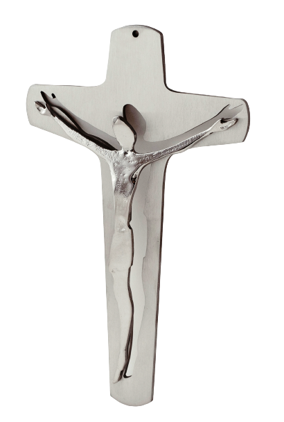 Piękny krzyż naścienny, wykonany ręcznie w całości ze stali nierdzewnej.