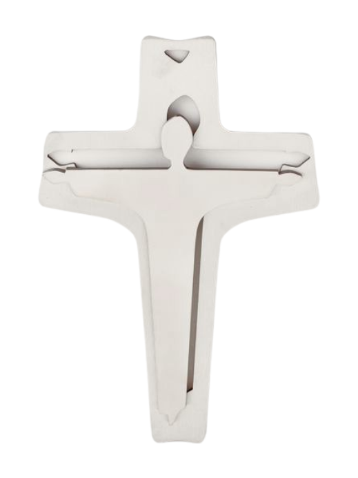 Piękny krzyż naścienny, wykonany ręcznie w całości ze stali nierdzewnej.