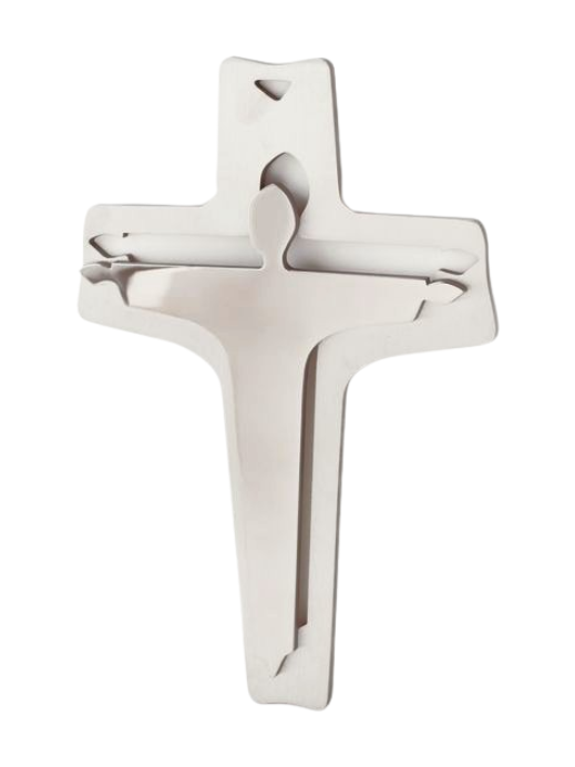 Piękny krzyż naścienny wykonany ręcznie w całości ze stali nierdzewnej.