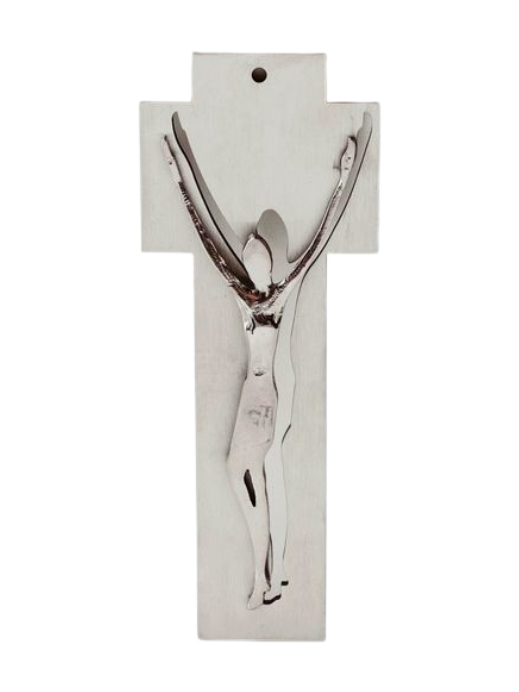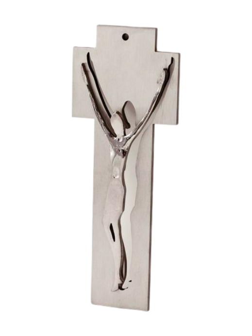Piękny krzyż naścienny, wykonany ręcznie w całości ze stali nierdzewnej.
