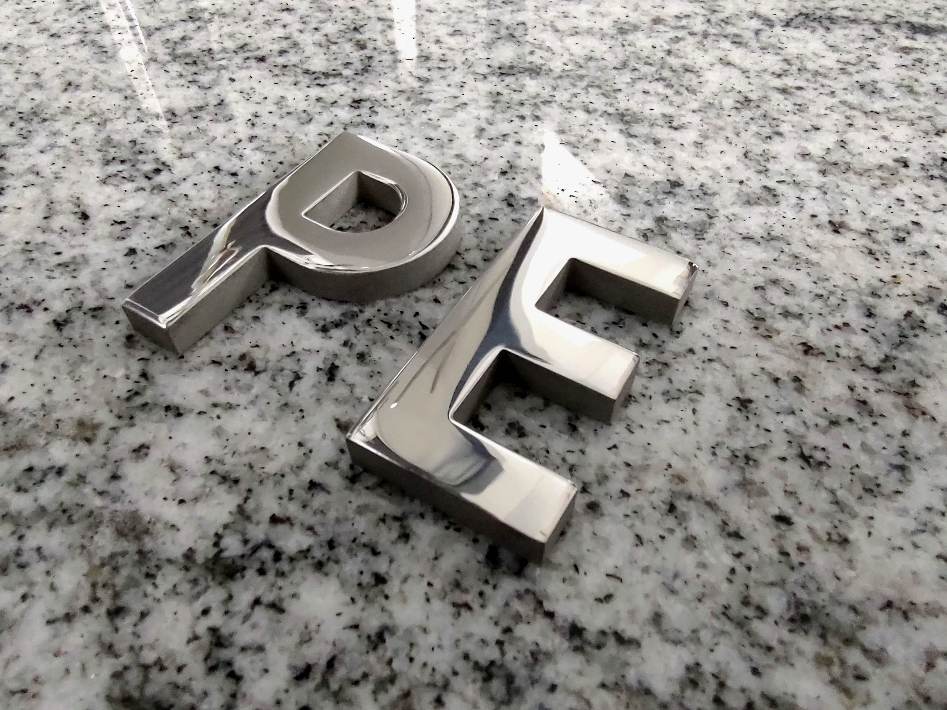 Wykonujemy litery w dowolnym wymiarze, czcionce i grubości (zazwyczaj 5mm), co sprawia, że pięknie prezentują się na każdym nagrobku i wyróżniają jakością wykonania.