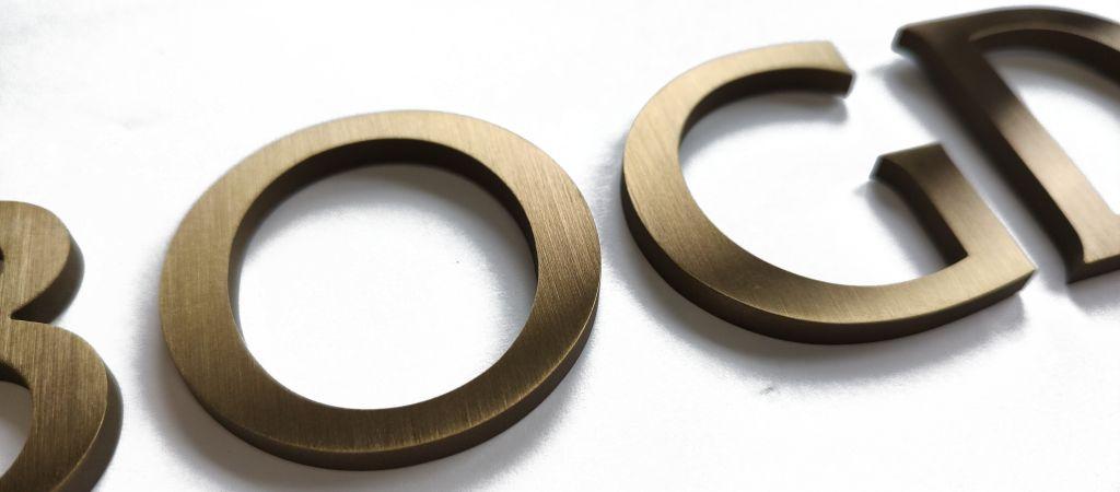 Wykonujemy również litery w kolorze antycznego złota, rustykalne oraz w fioletowo-brązowych barwach tęczy.