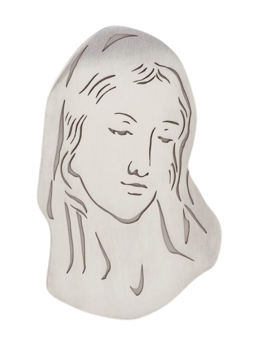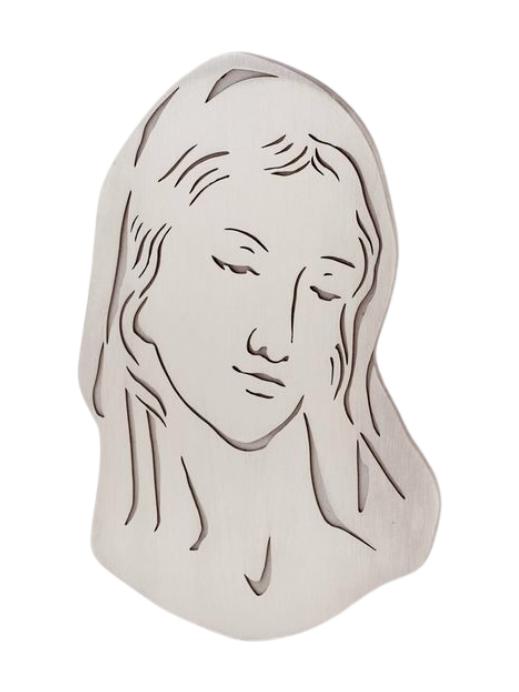 Piękny wizerunek Najświętszej Maryi Panny wykonany w całości ze stali nierdzewnej. Grubość 5mm. Szlifowany. Z tyłu posiada otwór do zawieszenia na ścianie.